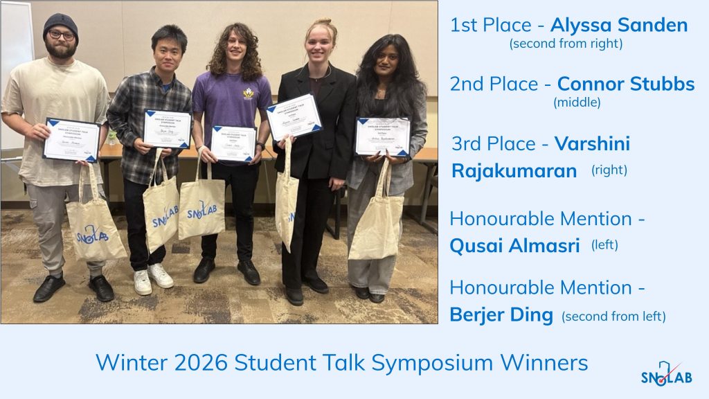 Congratulations to all of the students who presented at the Winter 2026 Student Talk Symposium! The SNOLAB community joins in wishing you all the best with the next steps in your education and career.