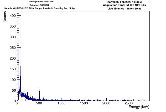 QBITS-CUTE G05a, Copper Powder in a Low Background Counting ContainerAn automatic cut removes runs which show an excess in the event rate in the overall energy region 100keV-3MeV w.r.t. the run average rate.