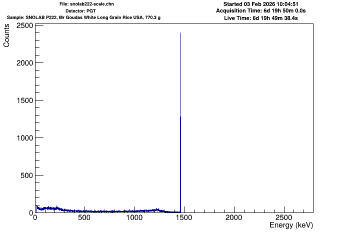 Sample of SNOLAB 222, Mr Goudas Long Grain White Rice (USA)An automatic cut removes runs which show an excess in the event rate in the overall energy region 100keV-3MeV w.r.t. the run average rate.